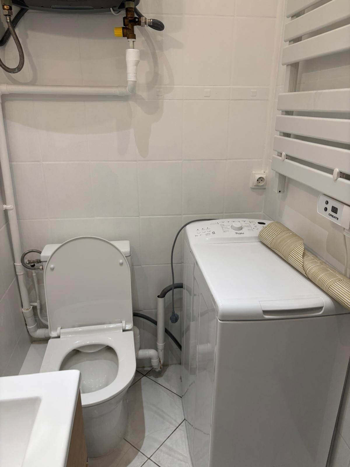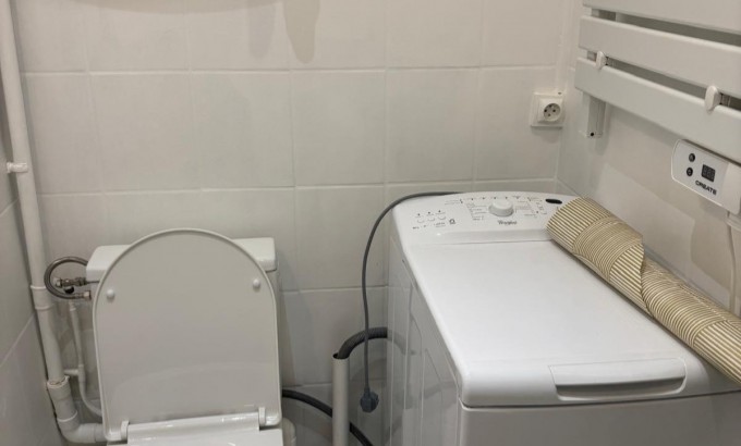 Salle de bain fonctionnelle : Avec baignoire et WC intégrés, offrant confort et praticité.