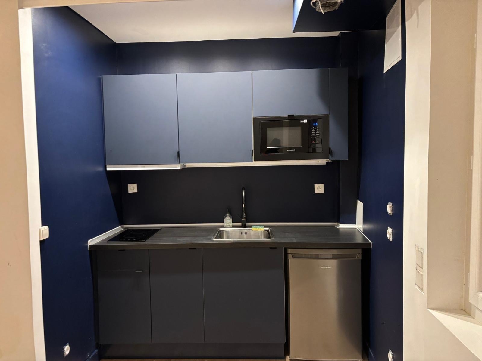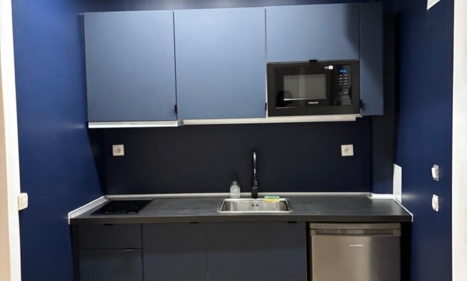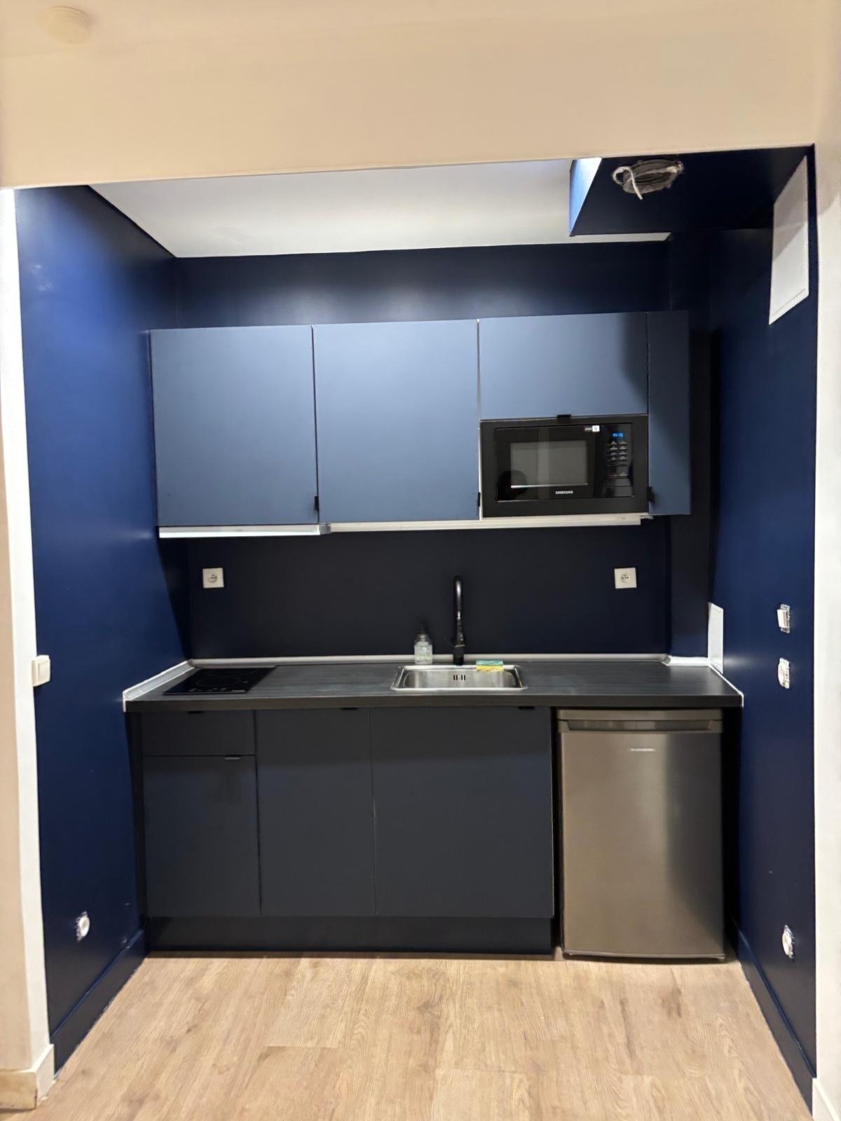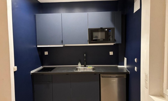 Cuisine équipée moderne : Espace principal avec kitchenette neuve, parfait pour cuisiner et recevoir.