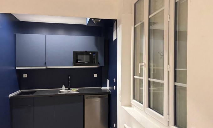 Calme et lumineux : Studio donnant sur une cour intérieure, sans vis-à-vis pour une atmosphère apaisante.